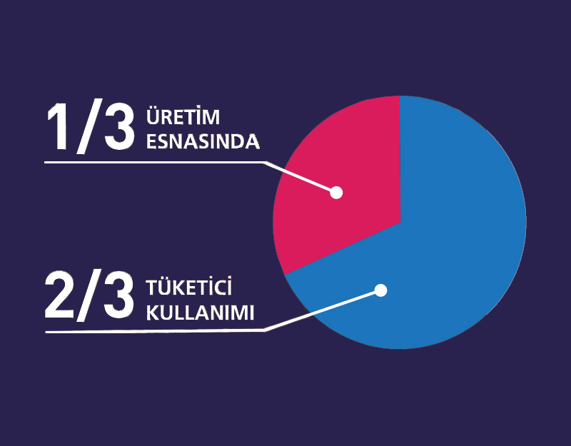 Bir giysinin oluşturduğu çevresel etkinin 2/3’ünün tüketici kullanımı sırasında oluştuğunu biliyor muydunuz? Tekstil ürünlerinin çevreye etkisinin yalnızca 1/3’ü üretim esnasında oluşuyor. Ürünlerin yıkanması, kurutulması, kuru temizleme gibi işlemlerden geçmesi etkinin büyük bölümünü yaratıyor.